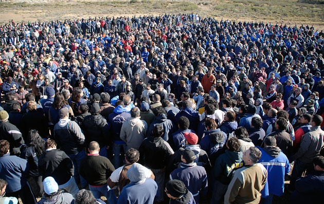 20/04 – 14:10 – Acaba de terminar una multitudinaria asamblea de petroleros en Cañadón Seco donde en este momento se llevan adelante las presentaciones legales correspondientes ante Escribanos Públicos presentes en el acto. La condición para el levantamiento del paro es la renuncia oficial de Héctor Segovia y los dirigentes Salguero y Padilla. En tanto no esté oficialmente comunicada la renuncia del Secretario General, el paro sigue. (Al pie de nota, Galería de foto)