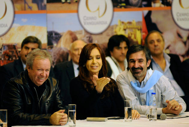29/03 – 21:15 – La presienta Cristina Fernández estuvo en Cerro Vanguardia para dar un espaldarazo a la ofensiva minera en el país. Desde allí habló a todos y en TV se intercalaron imágenes de laboreos mineros con la presencia de las autoridades en el acto. Dijo que en Santa Cruz la minería siempre “se hizo bien y de modo “sustentable” y que este tipo de negocios empezó en la provincia, con Néstor Kirchner. Vea la galería de imágenes