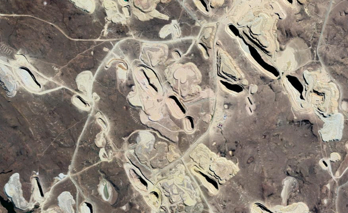 3) Observación y registro de gigantescos cráteres abiertos (open pit) donde se extrae material y luego se abandona, poniéndose otros en producción, dejando escombreras. Estas escombreras son gigantescos depósitos de material sin interés económico pero de alta contaminación.