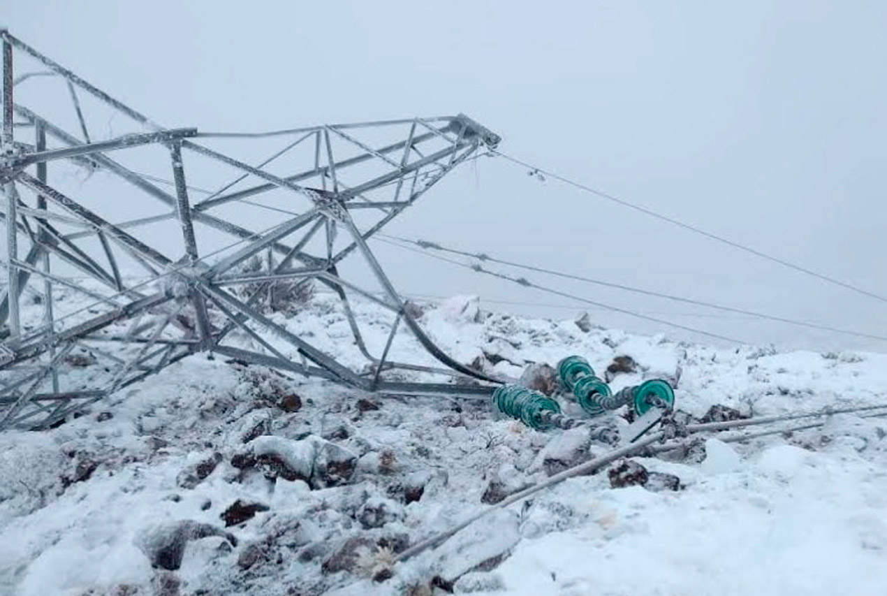 El temporal de nieve en Chubut hizo colapsar 19 torres de una línea de alta tensión