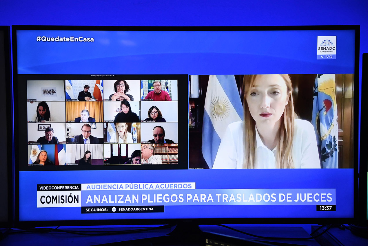 La audiencia, presidida por la senadora cristinista Anabel Fernández Sagasti, se llevó adelante por videoconferencia. Fue convocada a pesar de que la jueza en lo contencioso administrativo federal Alejandra Biotti había ordenado al Senado, semanas atrás, abstenerse de la revisión.