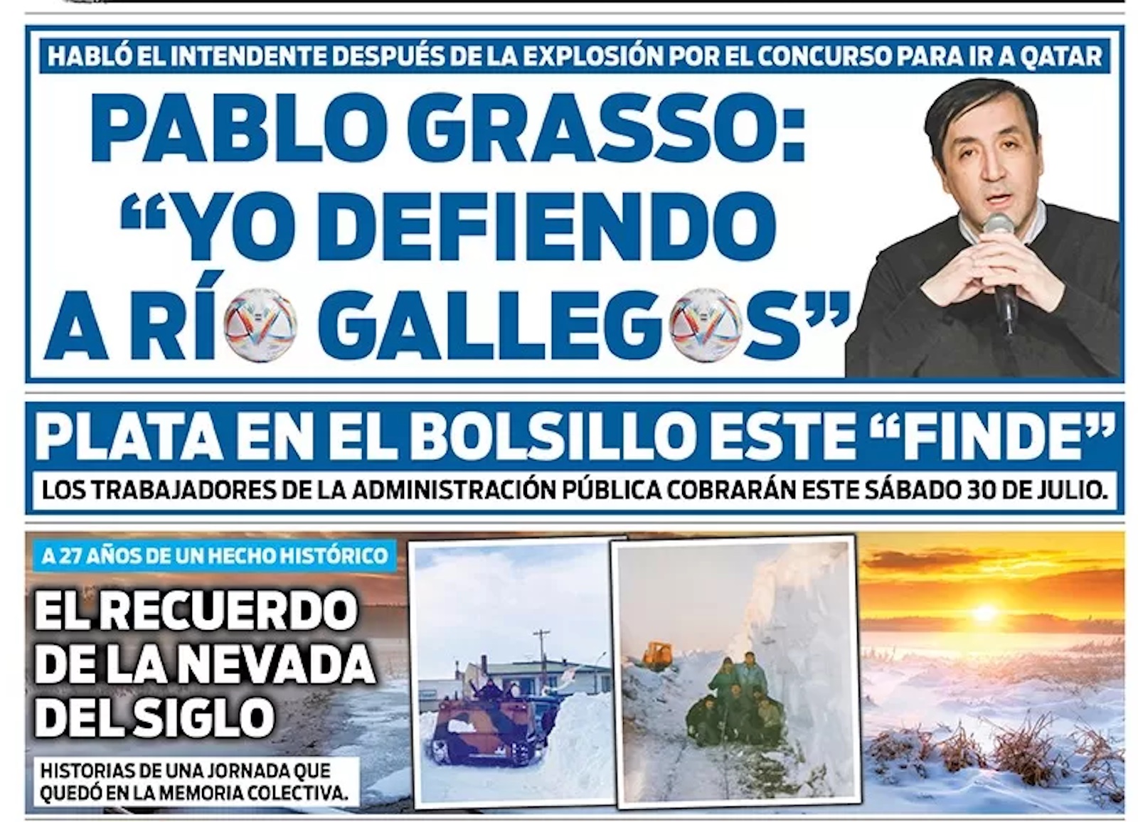 “Plata en el bolsillo este “finde”, no suena a un título serio, parece más bien un encabezado de algún diario de colegio secundario, con la gravedad que lo imprime un medio con 60 años de historia y una depreciación evidente, tanto en su línea editorial como en su faz informativa, por cuanto (al igual que otros medios impresos) han capitulado por millonarias razones, constituyéndose en una plataforma de negocios de socios foráneos acodados con el gobierno provincial y nacional, de donde reciben buenísima pauta que aportamos todos los argentinos, para hacer esta clase de operaciones dirigidas a un nicho de votantes cautivos, a quienes el gobierno ni siquiera les pagan bien, porque en Santa Cruz los destinatarios de ese mensaje están bajo la línea de pobreza y cayendo.