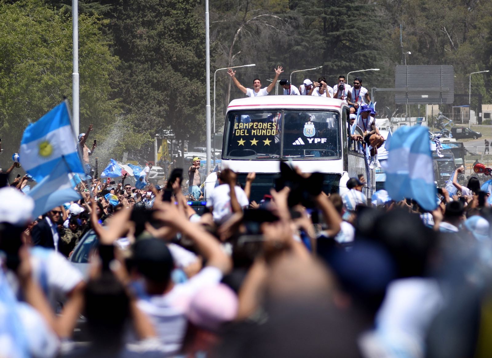 En el Gobierno había alta preocupación por posibles desmanes. El desborde de la gente fue obligando a recalcular en el camino. Por eso los jugadores terminaron desviando su recorrido a Parque Roca para subirse a helicópteros que los llevaron al predio de AFA.