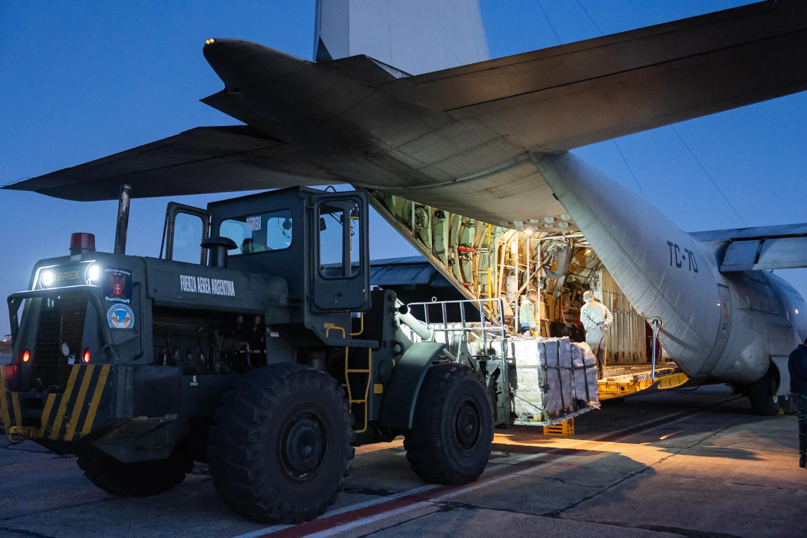 Este viernes 28 de junio llega un avión Hércules C-130 que proveerá de ayuda alimentaria y medicamentos a la provincia y serán distribuidos mediante la participación del Comité de Operaciones de Emergencia junto a la coordinación de la Secretaría de Protección Civil. (OPI Santa Cruz)