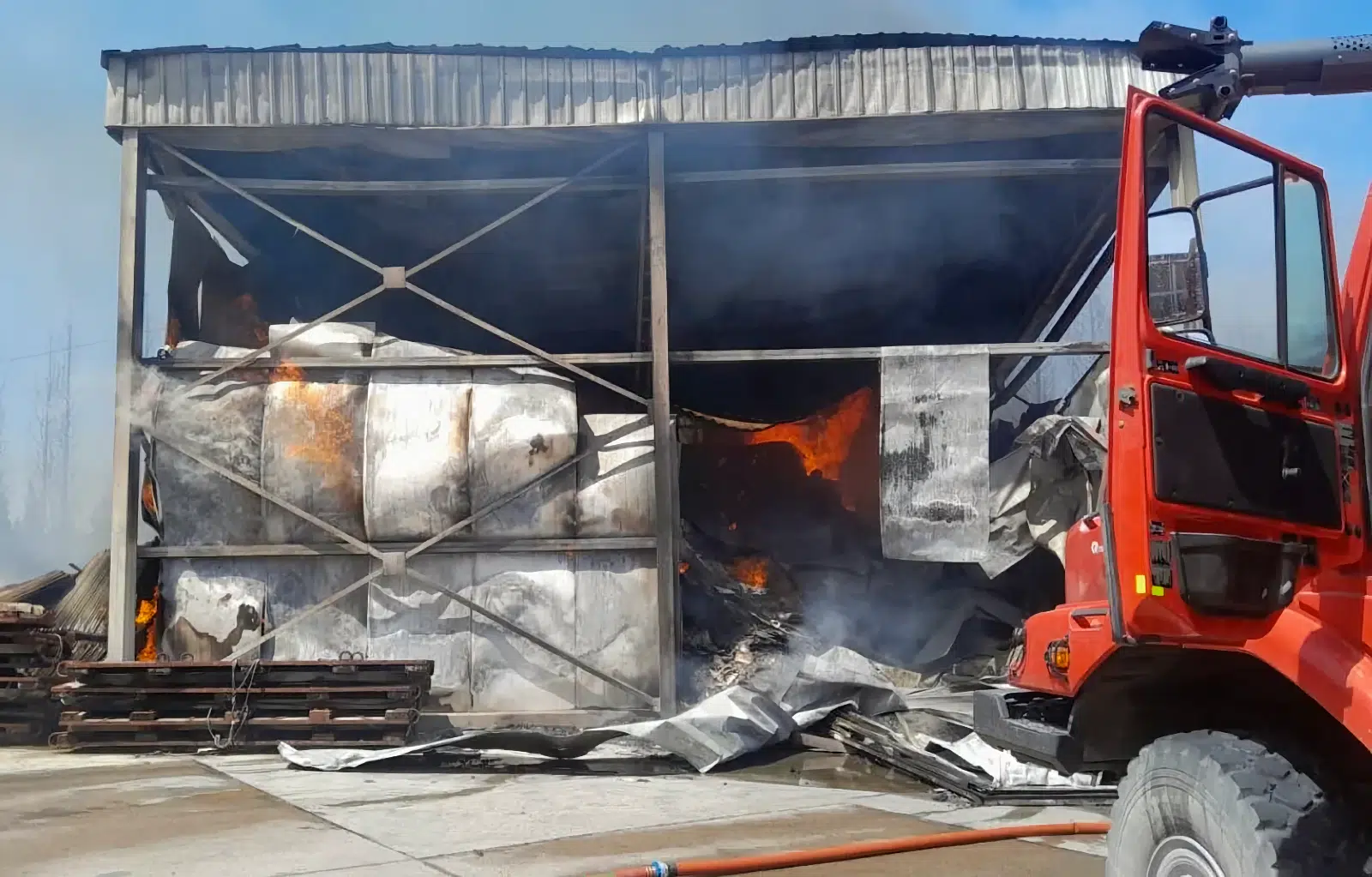 Según las primeras informaciones, el origen del incendio se habría producido por una explosión de un tablero eléctrico en un depósito que contiene material de alta combustión.