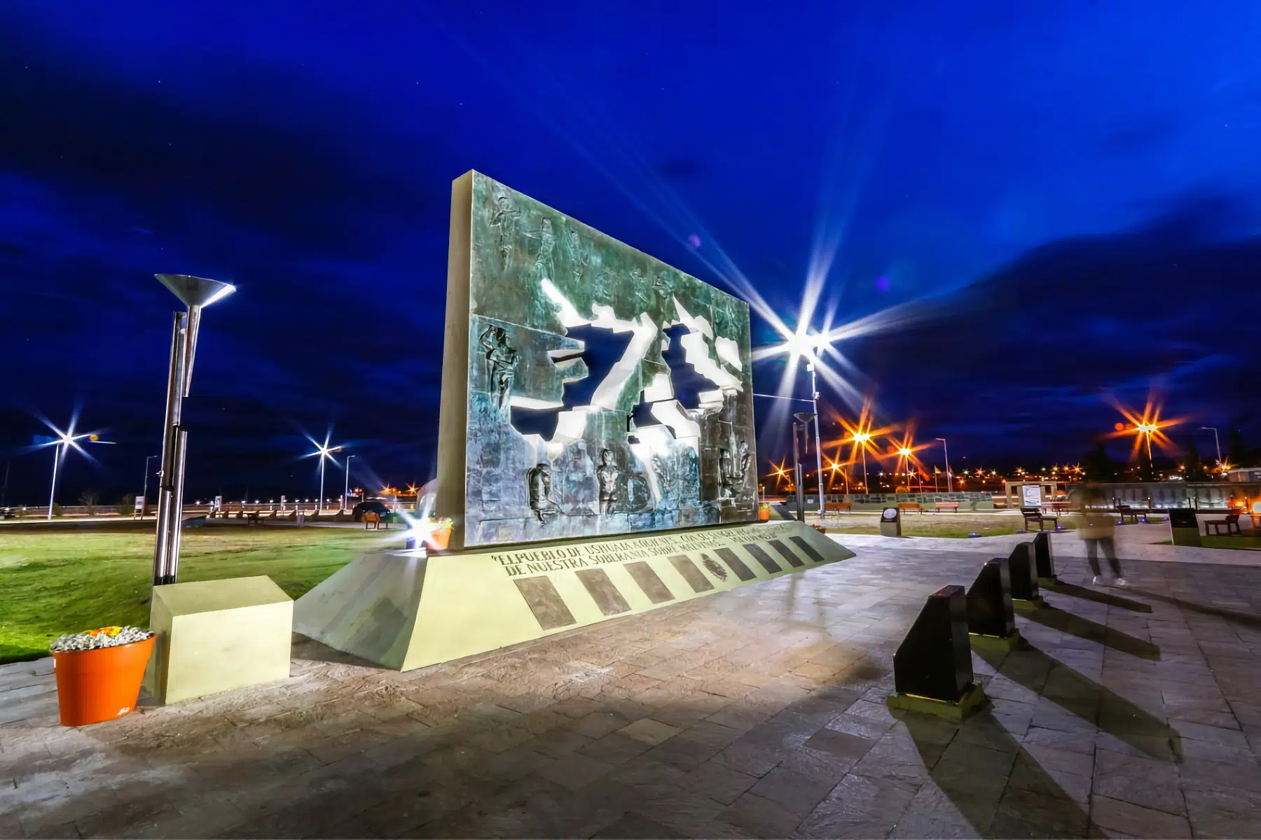 La hoja de ruta continúa en la Plaza Islas Malvinas. Los agentes municipales explican la historia de este espacio público y describen cada uno de los elementos que integran el monumento histórico del sector costero.