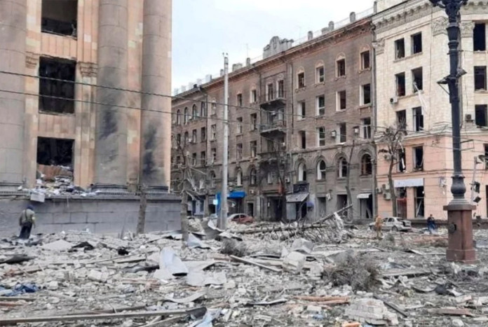 Brutal bombardeo en el edificio administrativo de Járkov, la segunda ciudad más grande de Ucrania