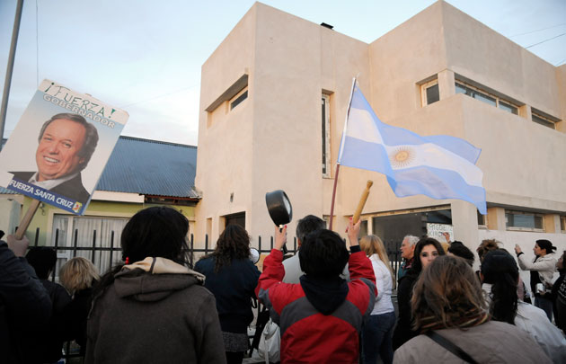 A partir de las 20:00hs algo más de 300 personas se dieron cita en la intersección de las calles Roca y San Martín de esta capital, munidos de cacerolas que hicieron sonar todo el tiempo, pidiendo la renuncia lisa y llana del diputado por el pueblo de Río Gallegos Mauricio Gómez, profiriendo insultos sobre todos y cada uno de los integrantes de La Cámpora, que hoy fueron los principales artífices de no dar presencia para que se cayera la sesión en la legislatura.