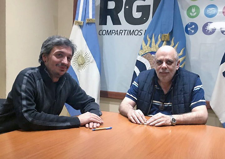 La foto es icónica: Roberto Giubetich (UCR/Cambiemos), Intendente de Río Gallegos junto a Máximo Kirchner (FPV) en el despacho del jefe comunal, donde además, si bien no están dentro del cuadro, concurrieron Matías Bezi y el Ministro de Gobierno Fernando Basanta.