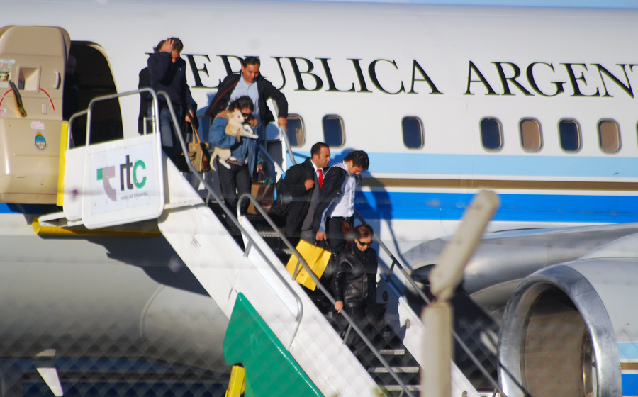 - Cristina Kirchner junto a su comitiva arriba a Río Gallegos en el T01 – Foto: OPI Santa Cruz/Francisco Muñoz