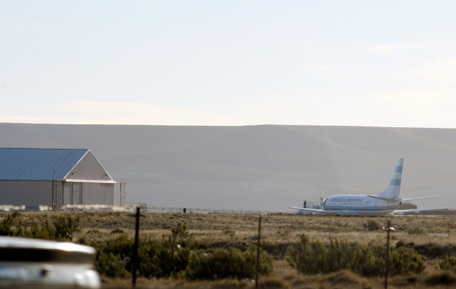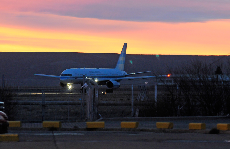 - El LV-CRI Dassault Falcon 900 aterriza en Río Gallegos con Cristina Kirchner, por orden presidencial se instalo una media sobra sobre el alambrado perimetral del aeropuerto de Río Gallegos, para evitar las fotos – Foto: OPI Santa Cruz/Francisco Muñoz
