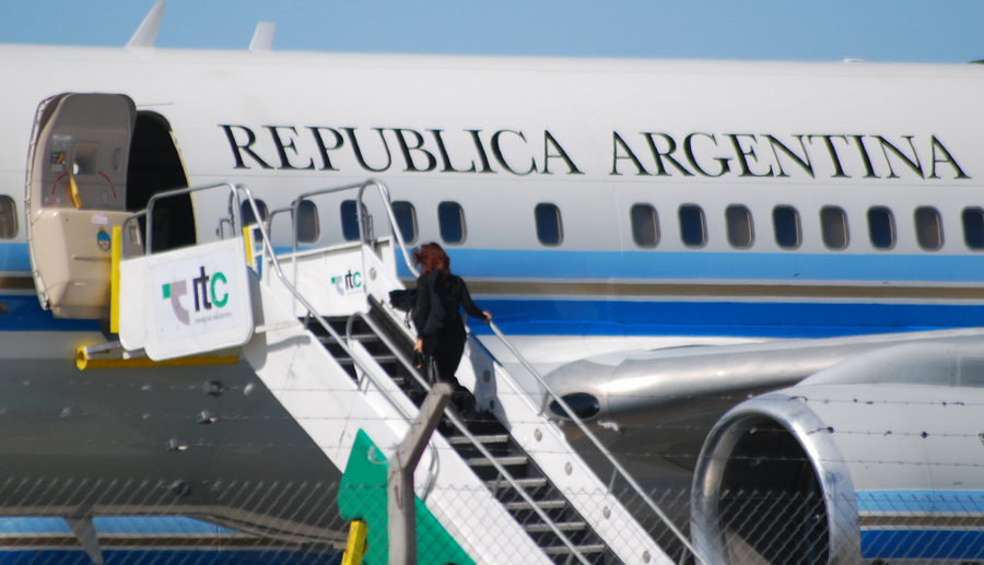 - La ex presidenta de la nación Cristina Kirchner aborda el T01 en Río Gallegos – Foto: OPI Santa Cruz/Francisco Muñoz