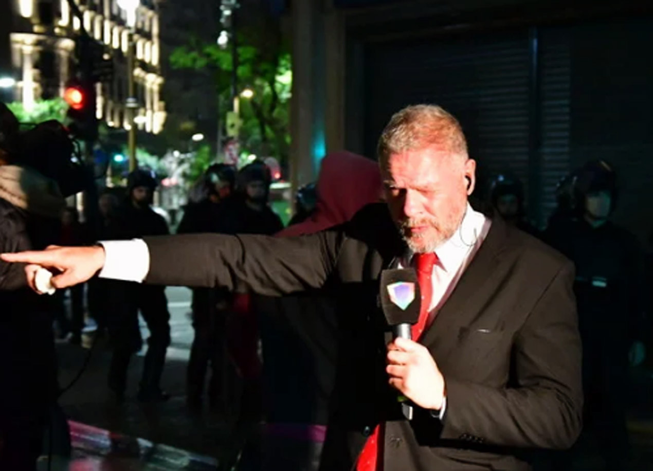 Por otra parte los manifestantes también agredieron a dos cronistas de A24, mientras estaban en vivo. A Gabriel Prósperi lo empujaron mientras le gritaban insultos y cánticos referidos a la “prensa burguesa”; minutos después a Marcelo Padovani le rociaron gas pimienta en el rostro cuando estaba dialogando con Eduardo Feinman. El cronista tuvo que interrumpir su relato para mojar su rostro con agua y poder recuperarse.