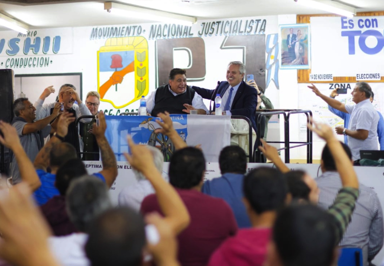 El presidente Alberto Fernández brindó este miércoles un efusivo discurso rodeado de militantes - Foto: Twitter Mario Ishii