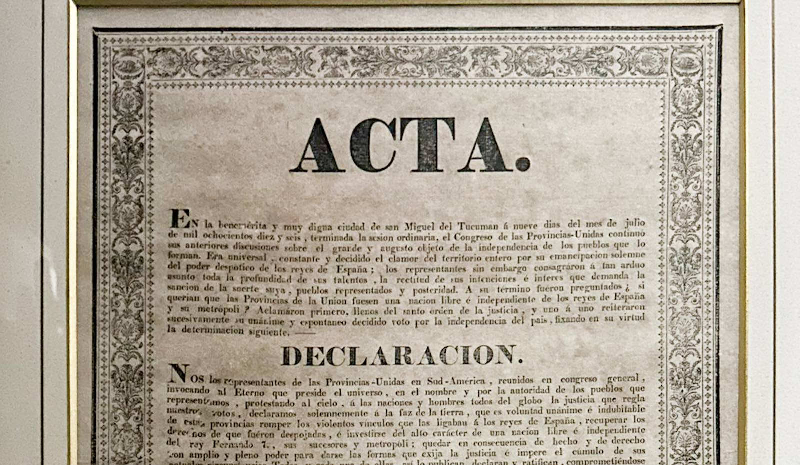 El acta original de la declaración, firmada por los representantes de las Provincias Unidas del Río de la Plata, había desaparecido, y en la actualidad, las copias se consideran los documentos originales, ya que cuentan con un pie de imprenta que lo certifica. Durante los últimos 200 años, son pocos los documentos que se conservan de este importante suceso histórico.