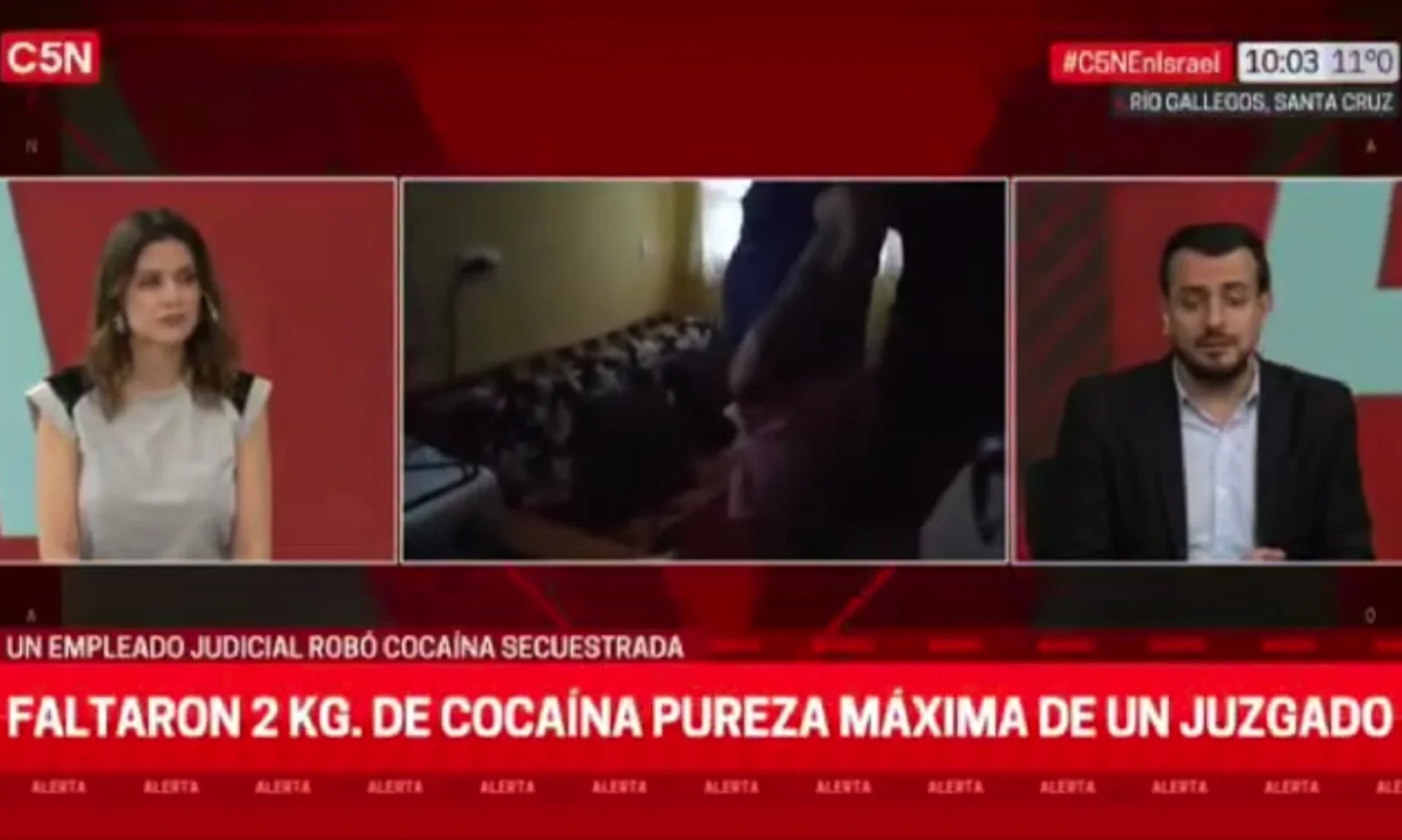 De acuerdo a lo publicado por C5N, las sospechas recayeron sobre el empleado quien fue registrado por las cámaras de seguridad del Tribunal, e inmediatamente de constatar el delito, las autoridades judiciales ordenaron un allanamiento en la casa de esta persona, donde encontraron los envoltorios con los dos kilos de drogas incautadas.