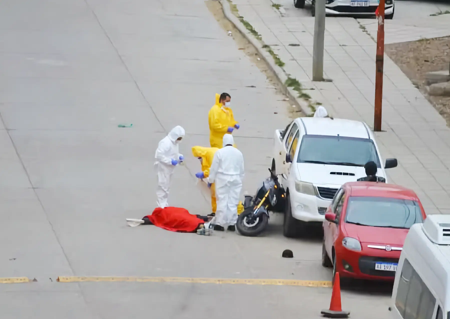 En la escena del crimen, los investigadores trabajaron en el levantamiento de huellas, toma de fotografías y mediciones. La motocicleta fue resguardada sobre una camioneta policial para evitar la pérdida de fluidos y preservar rastros biológicos. La causa se encuentra en etapa preliminar y no se descarta que se hayan producido múltiples detonaciones durante el enfrentamiento. (Agencia OPI Santa Cruz)
