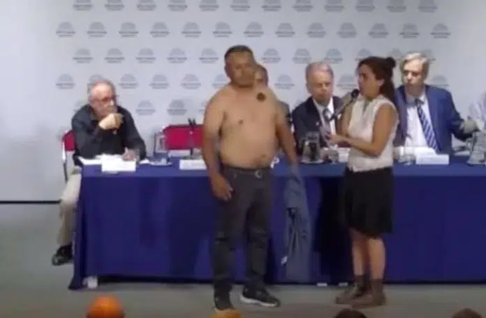 Exponen a un hombre con el torso desdnudo en Diputados para cuestionar las vacunas