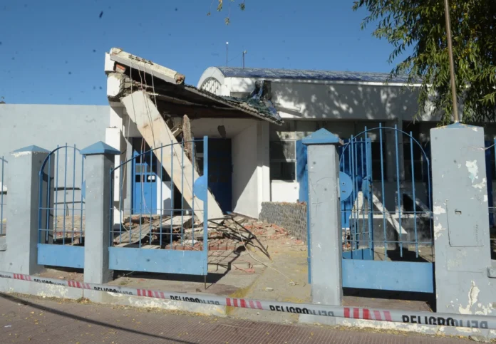 Colapsó el hall de ingreso a la Escuela Nº 44 y no hubo víctimas porque el derrumbe se generó en la madrugada de hoy martes 16