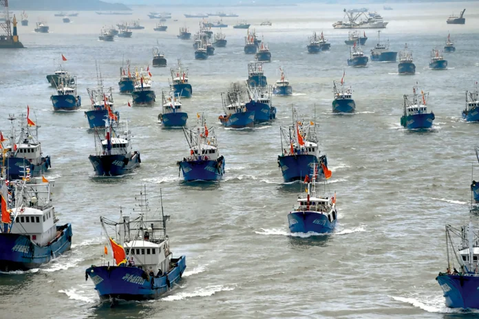 Flota pesquera china permaneció en ZEEA 4 días “por razones climatológicas”. Presumen que hicieron estudios y toma de imágenes ecoicas